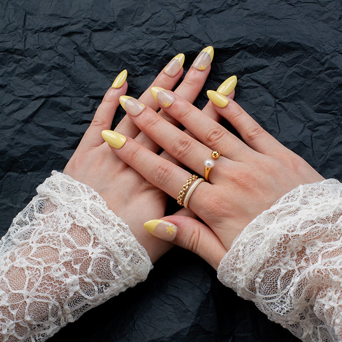 Introducing 'Fresh Daisy,' a vibrant and cheerful short almond nail set that brings the essence of spring to your fingertips. With a blend of soft nude and sunny yellow, each nail is delicately adorned with daisy accents, capturing the beauty of blooming flowers. Perfect for brightening up any look, 'Fresh Daisy' is your go-to set for a playful yet elegant touch.