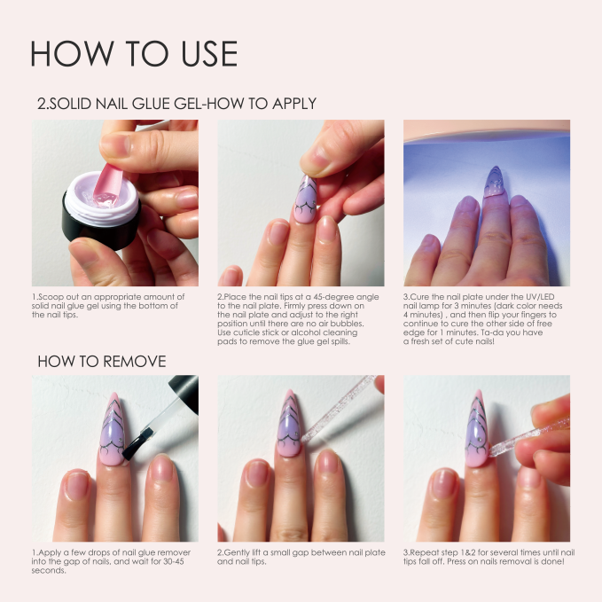 K&S Nails Press on Handmade Nails - Short Almond | Nail Kit with solid nail glue gel, adhesive tabs, UV/LED Lamp and Glue Remover | 10 pieces press on nails